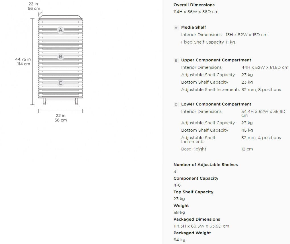 The Corridor collection continues to earn its place as a home theatre centre-piece with a series of useful integrated features. The louvred doors provide IR-Remote access and to allow sound to freely flow through. The black micro- etched glass surface is finger-print resistant and can easily buff out scratches. Corridor also features an integrated cable management system what will help you keep everything organised alongside removable back panels for simple equipment set-up and maintenance, especially if your components are on the larger size. Its sturdy black steel legs create a stylish platform base which incorporate removable hidden wheels to assist movement and positioning.