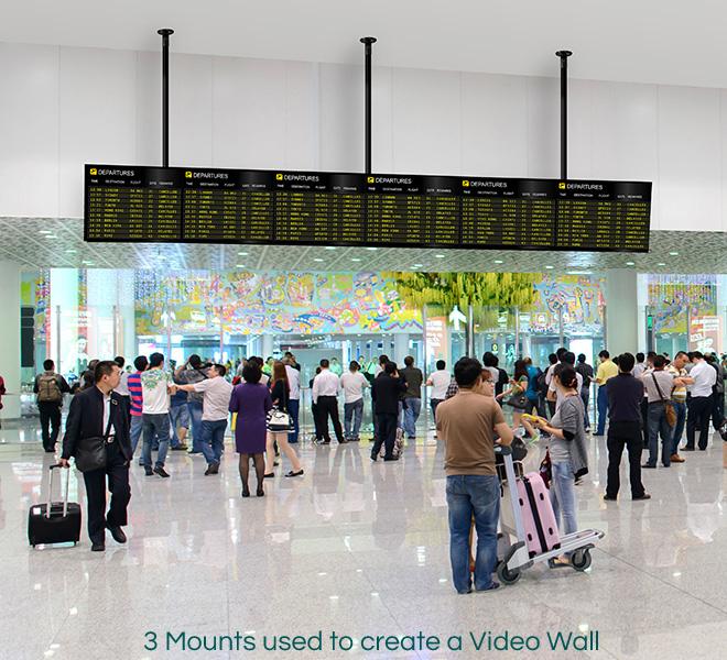 The B-Tech BT2X1CLT is a heavy duty TV ceiling mount designed to support twin screens side by side. It is ideal for use in a digital signage environment. There are three choices of pole length, 1m, 1.5m and 2m. It will support two TV screens up to 65 inches and up to 50Kg in weight per screen. Integrated cable management within the column ensures that unsightly cabling will not be seen.