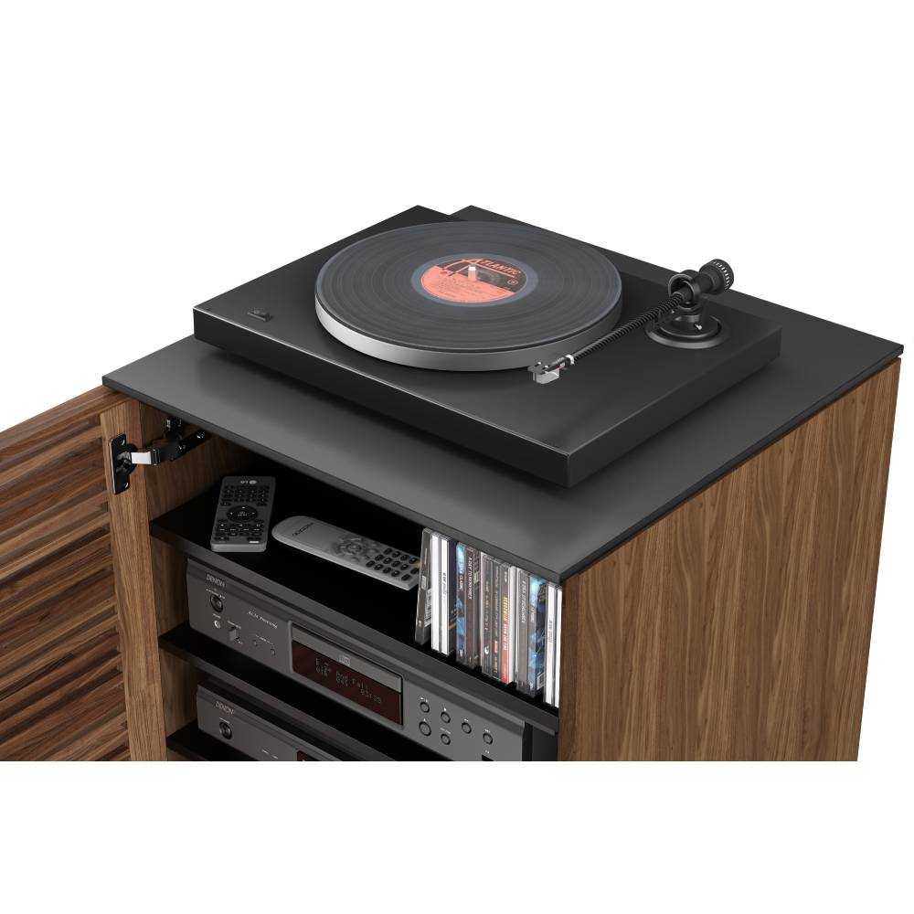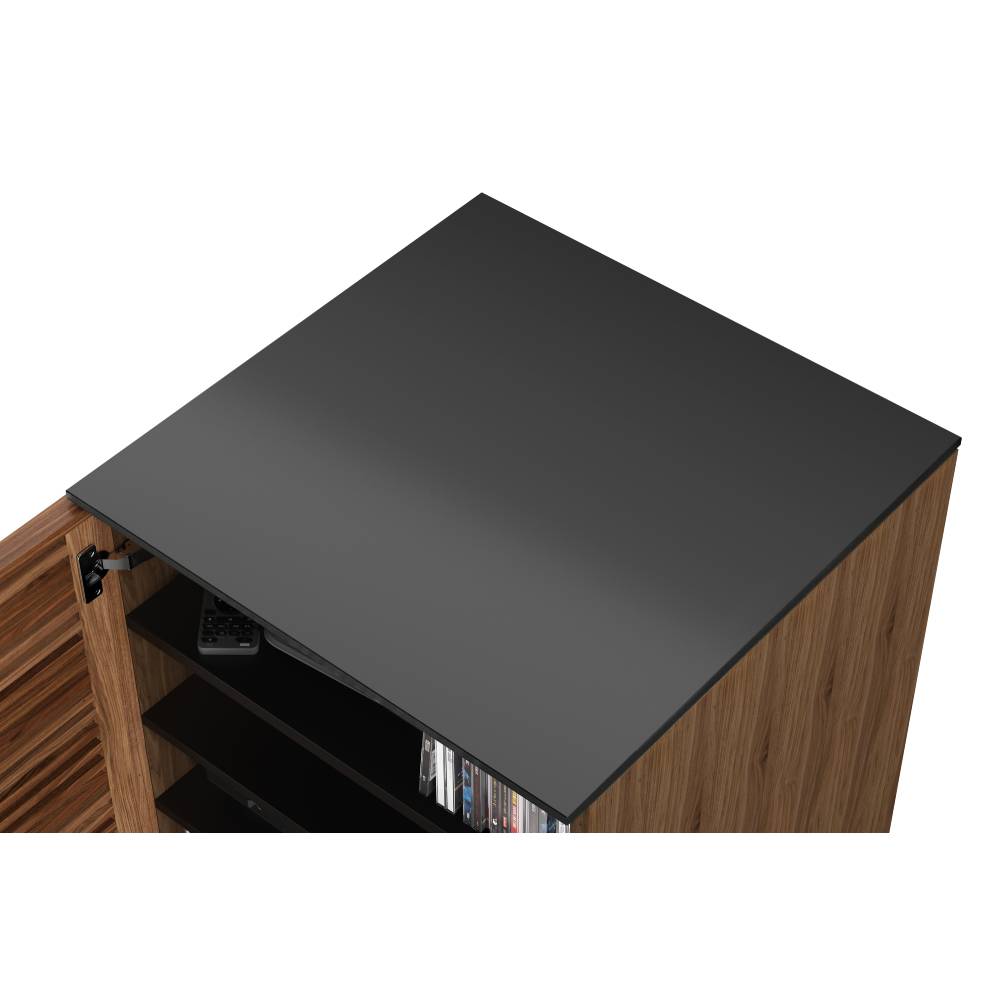 BDI has expanded its popular AV friendly Corridor collection with the new Corridor 8172 Natural Walnut AV Tower. The BDI Corridor 8172 provides fully ventilated storage for components and media devices and offers dual depth storage. Featuring a reversible hardwood louvred door which can be fitted with left or right opening to reveal a dedicated media shelf and two duel depth compartments, perfect for storing LP's and CD's. A concealed power strip compartment hidden away under the top glass surface which is also a perfect home for a turntable. Four adjustable shelves and plenty of positioning heights gives you the flexibility to house your components as you wish.