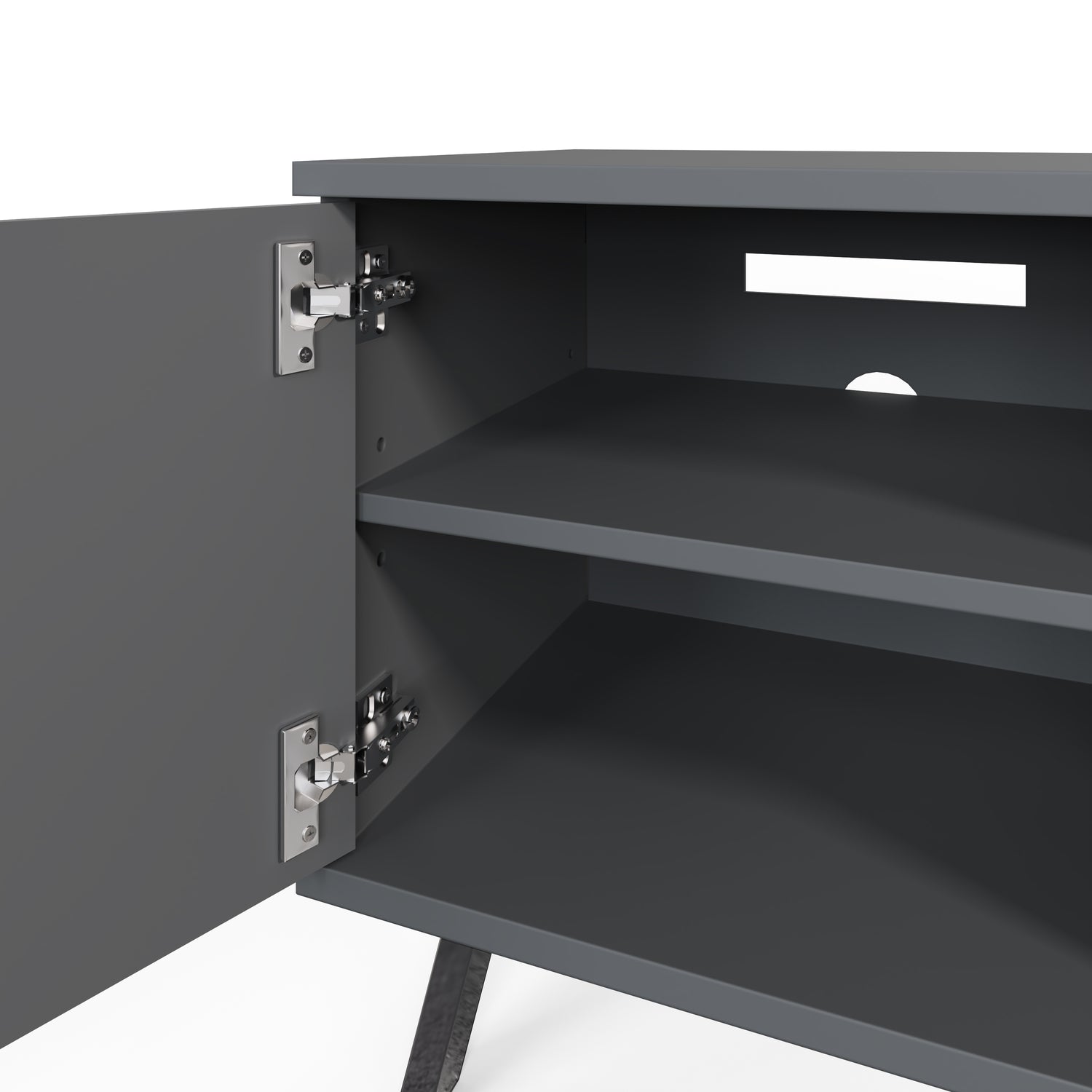 Demonstrating that luxury intelligent interior design does not have to cost the earth. The Elevate TV unit with high gloss painted doors, boasting a striking geometric design and a satin finish main body, brings a sleek contemporary style. The TV unit rests high-shine smoke chrome legs to complete the look and give added height.
