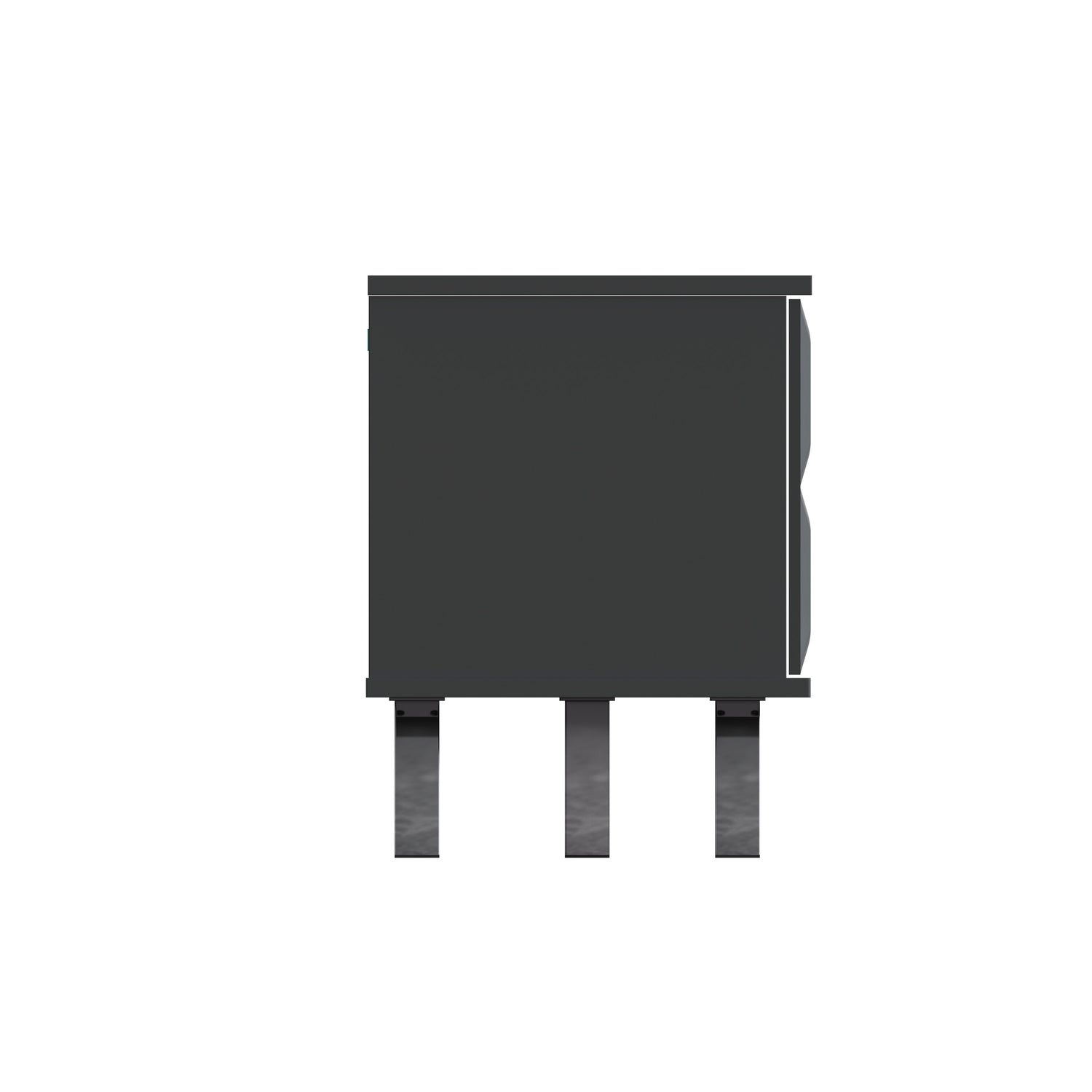 - High-shine smoke chrome legs.