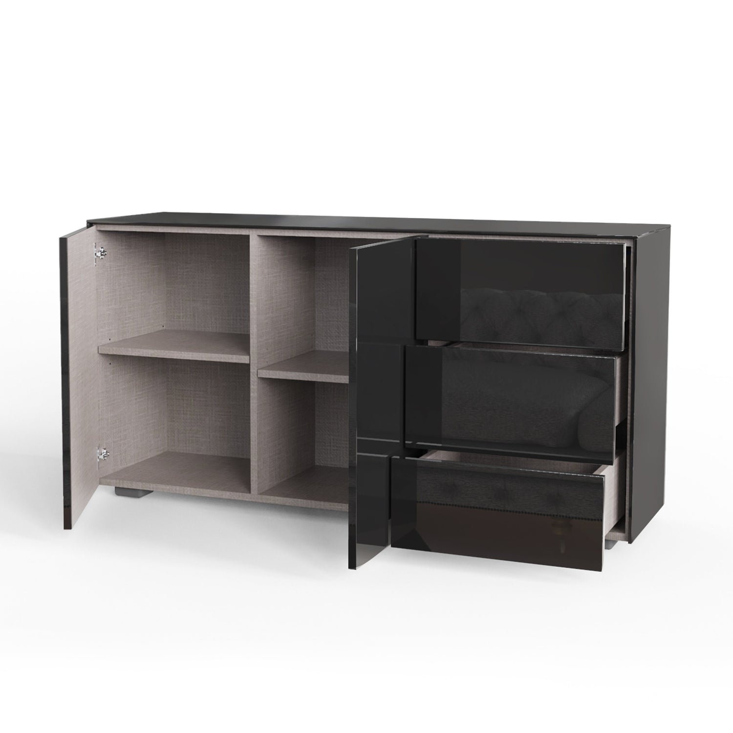 The sideboard has Gloss Black doors and drawers and the glass top gives a great, wipe clean surface