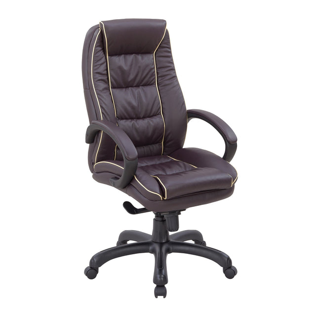 Nautilus Designs Truro High Back Leather Faced Executive Armchair with Contrasting Piping - Burgundy