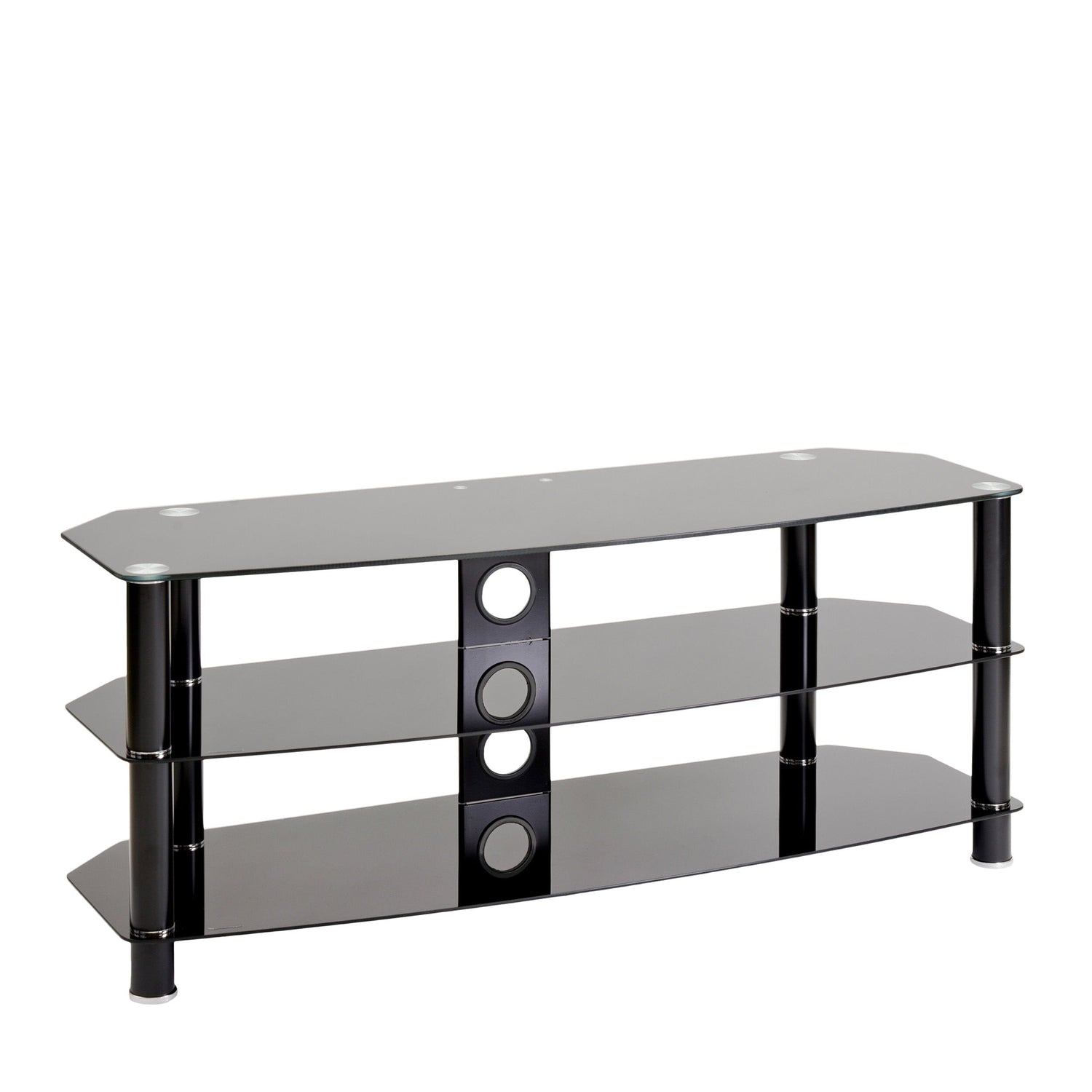 TTAP Vantage 3-Shelf Glass TV Stand in Black and Black Glass (AVS-C303C-1050-3BB)